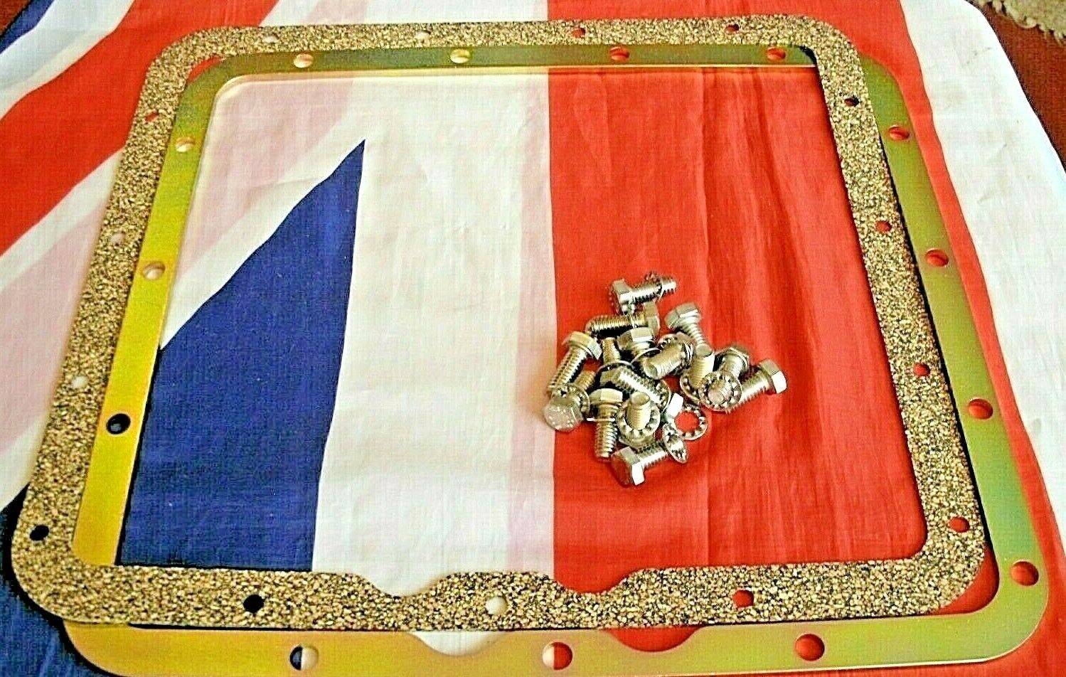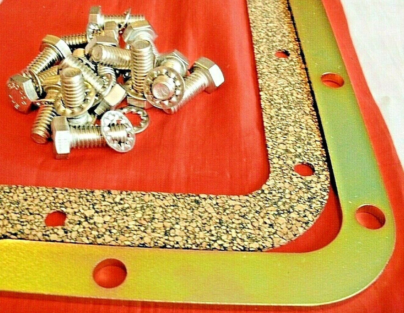 B / One steel plate with one CORK gasket & 15 stainless steel washers & bolts